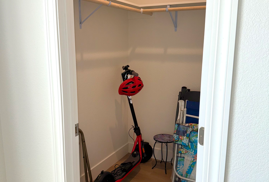 Home is less than a year old and shows better than a new model. Corner location and separate parking, this home includes many custom features; recessed lighting, high flat ceilings, granite counters, stainless steel appliances, utility room with washer and dryer, walk-in closets in all bedrooms, upgraded lighted mirrors in both bathrooms, covered front trex porch, back trex steps, concrete surrounding home, 6' fencing, outside storage shed, close to clubhouse, swimming pool and spa, guest parking, dog park.